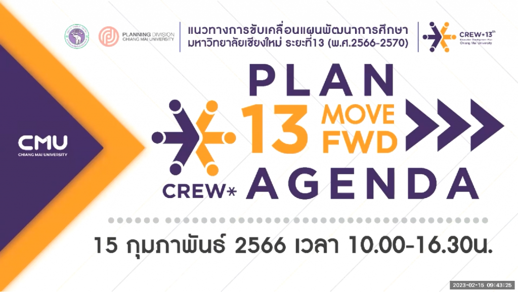 (Update 14 มี.ค. 66 Clip Video) การประชุมชี้แจง “แนวทางการขับเคลื่อนแผนพัฒนาการศึกษา มหาวิทยาลัยเชียงใหม่ ระยะที่ 13 (พ.ศ. 2566-2570)” 17 กุมภาพันธ์ 2566